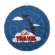Retro style "Let's travel" illustration with airplane decoration on the cloudy sky