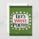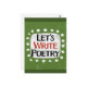 "Let's Write Poetry" is a cute text design with a white accent shape surrounded by white textured whimsical dots.