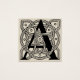 This capital Letter A is winding around a vintage Celtic Knot. This vintage " A " is a wonderful monogram for that " A " someone in your life! This initial A is done in a very ornate lettering style, typical in the Old English and old world Celtic knots that you see in antique books and other designs. The black and white monogram A is perfect for you if your name starts with the letter A -- so, if you need to seal letters with your name, or personalize your gift in a beautiful way, our A design is a wonderful gift.