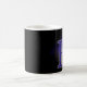 Mok met de letter B. (bijvoorbeeld je initiaal) Leuk als je naam met de B begint of die van een ander. Achter de letter is een raster en mysterieuze wolken met een licht die erop schijnt. De letter B is gevuld met een plaid patroon en een grijze rand erom heen. kleuren blauw, paars, geel en zwart.