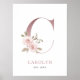 Pink floral nursery poster with letter C monogram. Elegant and feminine letter C monogram poster with delicate watercolor flowers. This will be a perfect personalized accent for nurseries, bedrooms and other spaces. With space to put the name and date.