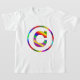 A colourful monogram with the letter C in rainbow colours inside of a rainbow circle. Share your pride of your name with a fun happy initial C.