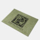 Charming decorative letter D initial monogram calligraphy style typography first letter in black over vintage sage green book lining with off white Ginkgo biloba leaves.