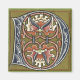 This capital letter ‘D’ is done in a very ornate style. The initial itself is not just a plain, capital letter. It looks like the ‘D’ itself has been cut open, peeled back, and carved. In the centre of the letter there is a floral design with a heart. There are two of these designs – one upside down on top of the other. A green background sets off all of the colours in the design of the monogram.