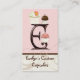 Letter E Monogram Custom Business Cards for your cupcake or other bakery business. Sweet and Contemporary! This business card design features three hand painted cupcakes in chocolate brown and soft pink and cream. The Monogram Letter is in “chocolate” and will appeal sweet lovers everywhere! The background is a soft shell pink with latte coloured swirls over a cream crackle finish and a chocolate brown stripe. This design is perfect for your wedding shower, bridal shower or for businesses such as wedding coordinators, event planners, bakeries, bake shops, custom wedding cake designers, specialty cupcake services and more. Every letter of the alphabet is available, if you don't see what you want just email us!