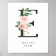 Letter E Monogram Watercolor Peach Florals Nursery Poster
