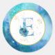 * LETTER E - Pastel Watercolor INITIAL MONOGRAM Nautical Beach colours such as Aqua Turquoise and Blue with Gold line drawing of Octopus , Sea Shell, Sea Turtle and Dolphin , glitter gold foil Nautical touches decorate this Modern Trendy Gold Glitter , White and Ocean Beach Watercolor Letter Seal / Envelope Seal Sticker.