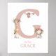 Letter G Monogram Boho Safari Animals Nursery Wall Poster