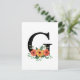 Floral black letter G card.