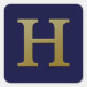 Gold capital letter H in faux gold bronze font. Metallic look achieved using highlights and shadows in yellow, brown and grey tones. Set on solid dark blue and can be customized with the background colour of your choice.