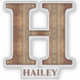 Letter H with rustic aged wood board texture. Customize with your name or message in brown matching lettering.