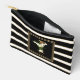 Letter I Floral Monogram Black White Gold Stripes Accessory Pouch