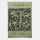 Charming decorative letter J initial monogram calligraphy style typography first letter in black over vintage sage green - avocado green book lining with off white Ginkgo biloba leaves.