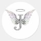 Letter J Initial Monogram with Angel Wings & Halo Classic Round Sticker