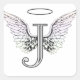 Letter J Initial Monogram with Angel Wings & Halo Square Sticker
