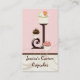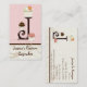 Letter J Monogram Custom Business Cards for your cupcake or other bakery business. Sweet and Contemporary! This business card design features three hand painted cupcakes in chocolate brown and soft pink and cream. The Monogram Letter is in “chocolate” and will appeal sweet lovers everywhere! The background is a soft shell pink with latte coloured swirls over a cream crackle finish and a chocolate brown stripe. This design is perfect for your wedding shower, bridal shower or for businesses such as wedding coordinators, event planners, bakeries, bake shops, custom wedding cake designers, specialty cupcake services and more. Every letter of the alphabet is available, if you don't see what you want just email us!