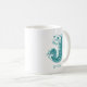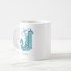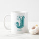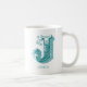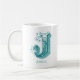 Customizable white coffee mug featuring the letter J in unique teal coloured typography. Add your name using the personalization feature.