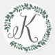 Letter K Monogram Minimalist Botanical Leaf Wreath Classic Round Sticker
