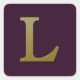 Gold capital letter L in faux gold bronze font. Metallic look achieved using highlights and shadows in yellow, brown and grey tones. Set on solid dark purple and can be customized with the background colour of your choice.