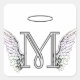 Letter M Initial Monogram with Angel Wings & Halo Square Sticker