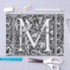 This initial M is part of a complete series of upper case William Morris inspired typography initials. The black and white lettering is highly decorative, styled after the fancy typography of the middle ages. Cute and trendy, this is a vintage chic monogram M - letter M- swirly M . Customize this vintage monogram by changing the background colour; just choose "edit design", and edit background colour. There is a complete alphabet of these letters. If you need a different letter, please visit the antiqueart store.