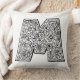 Mono black and white monogram M doodled drawn pattern pillow. Ideal for colouring in or just kept as a outline mono design. © Original drawing letter art and design by Sarah Trett. www.sarahtrett.com for www.mylittleeden.com