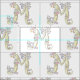 Pretty whimsical initial M hand drawn then converted to graphic letter art in grey with shades of yellow, purple, pink on a white background. Background colour can be changed to your own colour choice if required. Personalized with your own initial this fabric reads M, ideal for customized sewing projects. Other letters available. © Original drawing and design by Sarah Trett. www.sarahtrett.com for www.mylittleeden.com