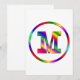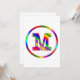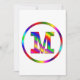 A colourful monogram with the letter M in rainbow colours inside of a rainbow circle. Share your pride of your name with a fun happy initial M.