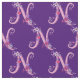 Pretty whimsical initial N drawing converted to graphic letter art in shades of purple and pink on a dark purple background. Background colour can be changed to your own colour choice if required. Personalized with your own initial this fabric reads N, ideal for customized sewing projects. Other letters available. © Original drawing and design by Sarah Trett. www.sarahtrett.com for www.mylittleeden.com