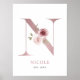 Letter N Monogram Watercolor Rose Florals Nursery Poster