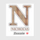 Letter N with rustic aged wood board texture. Customize with your name or message in brown matching lettering.