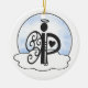 Letter P Alphabet Initial Monogram w Angel Clouds Ceramic Ornament