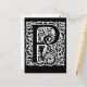 The letter P on a bold black and white card with an ornate swirl design. It has the appearance of antique woodblock art. If you're looking for a unique, signature design for all your correspondence needs, you can't go wrong with this one. Available on greeting cards, notecards or postcards. Envelopes included with greeting and notecards (no envelopes with postcards). Blank inside. Buy in bulk to save.