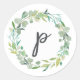 Use this clean looking design with a wreath of leafy eucalyptus greenery and a monogram letter P for a variety of occasions-- favour bags, envelope seals, etc.
