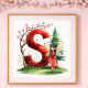 Letter S Seasonal Fairy Poster Cherry Blossom Art