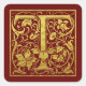 Charming decorative letter T initial monogram, calligraphy style typography, first letter in red and faux gold (shades of yellow with highlights and shadows to simulate metallic gold leaf gilding texture). This product can be customized with any colour and gold.
