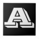 Ceramic letter tiles. Upper or lower case letter tiles. You customize with the letter or letters you need for your ceramic tile or mosaic sign. Letter tile for weather proof signs, house numbers. White on black background.