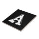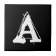 Ceramic letter tiles. Upper or lower case letter tiles. You customize with the letter or letters you need for your ceramic tile or mosaic sign. Letter tile for weather proof signs, house numbers. White on black background.