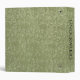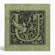 Charming decorative letter U initial monogram calligraphy style typography first letter in black over vintage sage green - avocado green book lining with off white Ginkgo biloba leaves.