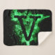 This sherpa blanket displays the capital Letter V inside of a glowing like green coloured effect decal with a unique font over the front panel with a delicate and soft feel perfect for picnics, outdoor events, and cozy winter snuggles. All blankets are made from 100% polyester printed mink with edge-to-edge sublimation printing and sturdy double edge stitching has soft Sherpa on the back with an off-white colour.