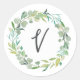 Use this clean looking design with a wreath of leafy eucalyptus greenery and a monogram letter V for a variety of occasions-- favour bags, envelope seals, etc.