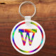 A colourful monogram with the letter W in rainbow colours inside of a rainbow circle. Share your pride of your name with a fun happy initial W.