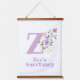 Initial & Name with Floral Design on a Wall-Hanging Tapestry. Design features the recipient's Monogram & Name with Flowers either side in a water colour pastel style. Initial is the letter Z. Personalised with your own name - Example shows Zoe.