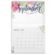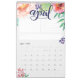 This feminine watercolor calendar features a 12-page monthly calendar (or 24 if you select that option) you can customize the text and also the style of the calendar grid beneath, it also includes a section to organize tasks or goals for the month, a note area and also a designated area for a quote to inspire you during the month.. Each page features a lovely lettered piece with the month and watercolor flowers and greenery. You can personalize the front cover with the year and your custom text as well as the back to make this beautiful 2019 calendar your own.