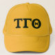 Represent on your head with this yellow trucker hat featured Tau Gamma Theta in blue.