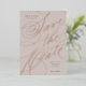 Une élégante carte Save the Date comporte des lettres manuscrites originales des mots "Save the Date" dans le style de script.