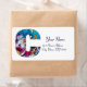 C bold alphabet lettre design initial .Musical, whimsical et artistique aquarelle peinture avec des couleurs vives rouge, bleu, jaune, blanc par Bulgan Lumini (c). Le Père Noël joue du violon dans la nuit d'hiver enneigée sous le ciel bleu, la lune et les étoiles jaunes avec un chouette amusant, expressif, chat et son sac de Noël plein de cadeaux colorés com