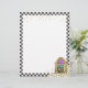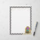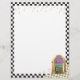 Jukebox rétro avec cadre en damier noir et blanc et papier à lettres de notes de musique or.