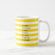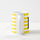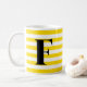 Lettre F Mug avec traits positifs commençant par F fixé contre bandes jaunes.