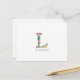 Carte à note plate avec un monogramme floral initial, lettre "L" avec nom en dessous.